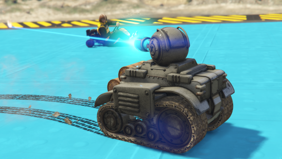 卡丁车对对碰:全自动为 GTA 在线模式引入了全新的大屠杀风格。在团队对抗中或乱斗中,玩家将通过装在卡丁车上的武器,以及散落在地图各处的各种能力道具来打倒对手,尽力活到最后。